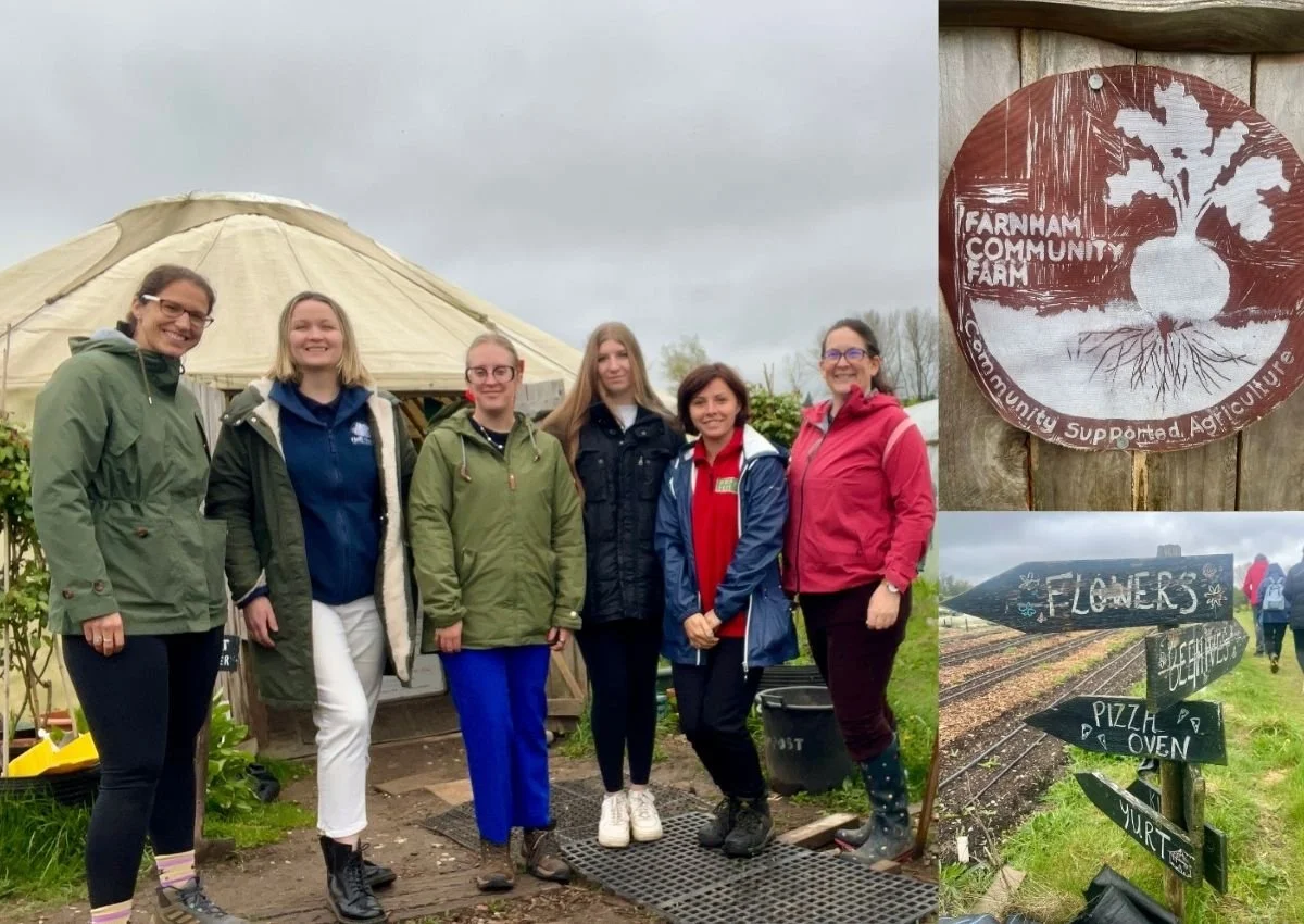 Zoe Coltart, Fund Development Manager with volunteers at Farnham Community Farm